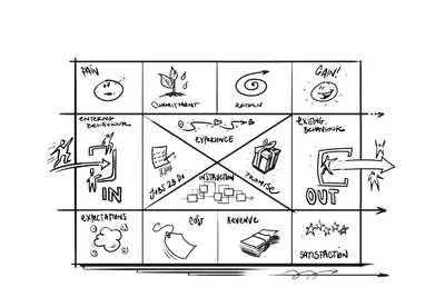 The canvas articulates how the behaviour changes as a result of having participated in the event as well as stating the required levels of satisfaction against expectations. Additionally the canvas outlines the costs and expected revenues in relation to the customer journey (service design) and the instructional design of the event.